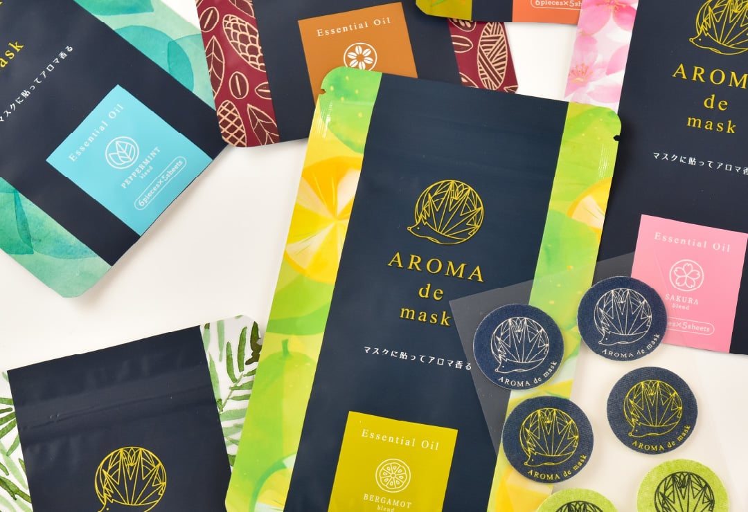 ハリネズミはその全身に針を持つために、想いを寄せる相手に近づこうとしても、自らの針でお互いに傷つけてしまいます。寄り添うためには距離をおかなくてはならないのです。 相手を想うからこそお互いの距離が必要な今、「AROMA de mask(アロマ de マスク)」はその距離がアロマで癒される優しいものであってほしいと考え、ロゴマークのハリネズミにその想いを込めています。